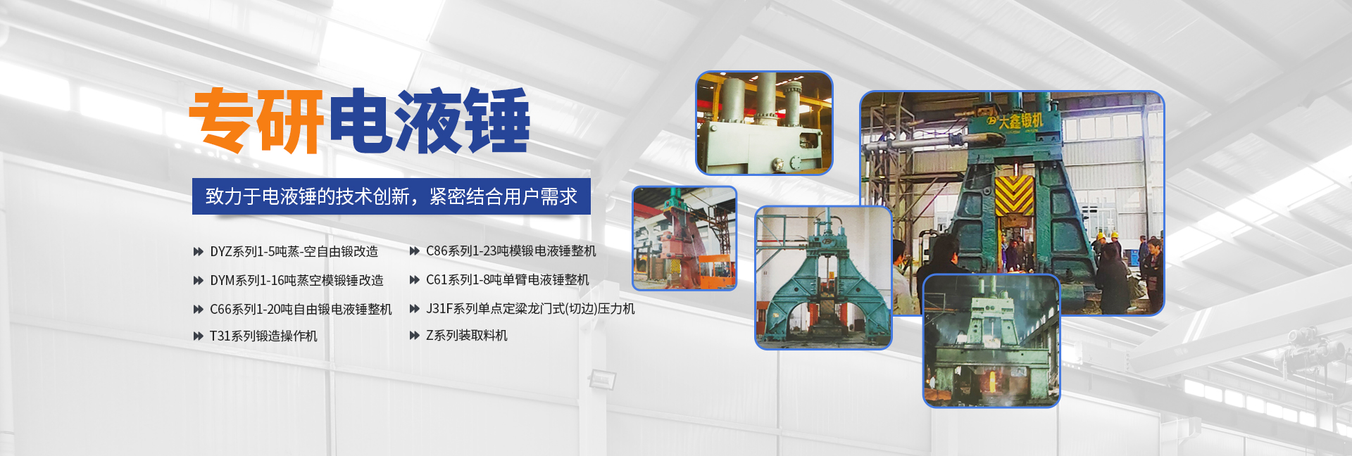 主導產品系列電液錘及輔機;1~5噸蒸一空自由鍛改造;1~16噸蒸一空模鍛錘改造;1~20噸自由鍛電液錘整機;1~23噸模鍛電液錘整機;1~8噸單臂電液錘整機。